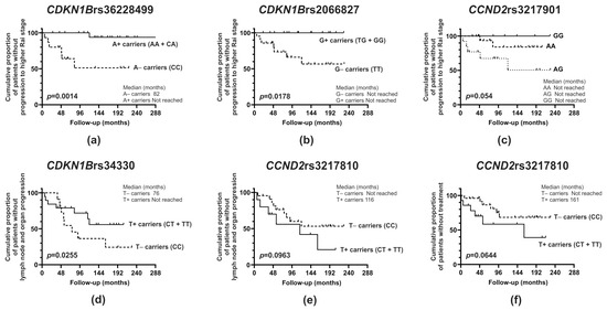 2.3. CDKN1B and CCND2 Gene Polymorphisms and CLL Outcome