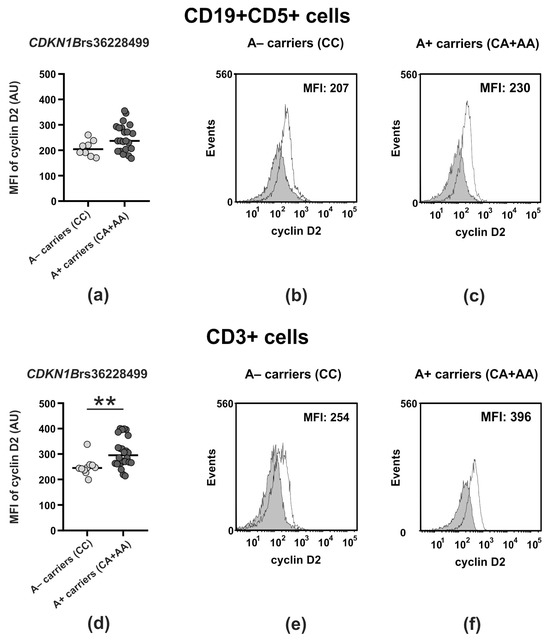 Ciszak, L.; Kosmaczewska, A.; Pawlak, E.; Frydecka, I.; Szteblich, A.; Wołowiec, D. Association of Genetic Variants at the CDKN1B and CCND2 Loci Encoding p27Kip1 and Cyclin D2 Cell Cycle Regulators with Susceptibility and Clinical Course of Chronic Lymphocytic Leukemia. Int. J. Mol. Sci. 2024, 25, 11705. https://doi.org/10.3390/ijms252111705