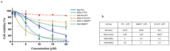 2.1. Effect of PLT, DMAPT, and PU-H71 in ALL Cell Lines
