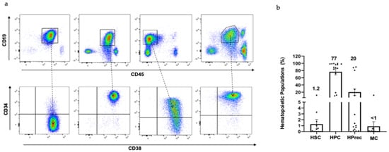 - Demanou-Peylin, E.; Blanc, S.; Da Costa Pereira, T.; Parietti, V.; Saintpierre, B.; Letourneur, F.; Souyri, M.; Domenech, C. Novel insights into residual hematopoiesis from stem cell populations in pediatric B-acute lymphoblastic leukemia. Pediatr. Res. 2022, 91, 1064–1068. [Google Scholar] [CrossRef]