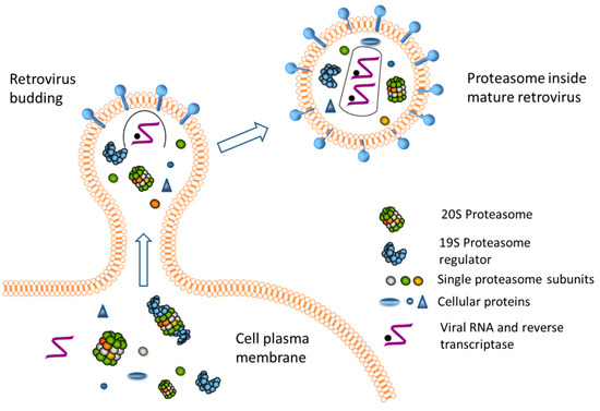 - Proteasome subunits and functional proteasomes are most likely trapped during the assembly of retroviruses.