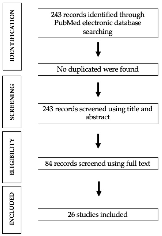 Initially, the screening was carried out based on titles and abstracts, then the relevant and qualified ones were read in full text, evaluated and selected by three independent authors (D.D.C.; C.G.; F.F.). In case of doubt regarding the inclusion of an article, a senior author made the final decision. Moreover, the methodological quality of the selected studies was assessed with the Methodological Index for Non-Randomized Studies (MINORS) [33]. In the MINORS score, there are 8 items for the non-comparative studies and 12 items for comparative studies. For each item assessed, there is a maximum score of 2. The global score is 16 for non-comparative studies and 24 for comparative studies.