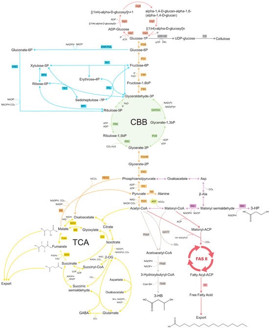 - Zhang, S.; Bryant, D.A. Biochemical Validation of the Glyoxylate Cycle in the Cyanobacterium Chlorogloeopsis fritschii Strain PCC 9212. J. Biol. Chem. 2015, 290, 14019–14030. [Google Scholar] [CrossRef] [PubMed]