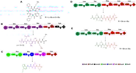 - Süssmuth, R.D.; Mainz, A. Nonribosomal Peptide Synthesis-Principles and Prospects. Angew. Chem. Int. Ed. 2017, 56, 3770–3821. [Google Scholar] [CrossRef]