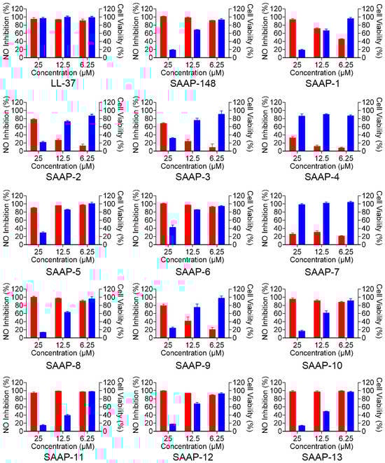 4.7. Inhibition of Nitric Oxide (NO) Production of SAAP-148 and Its Analogues