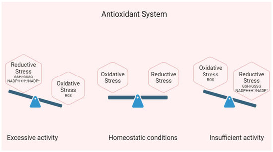 Oxidative stress (OS) is closely linked to aging and arises from an imbalance between oxidants and antioxidants. An overabundance of antioxidants can lead to a condition known as reductive stress (RS), characterized by an excess of reducing agents that disrupts the fine redox balance [14]. Many medical fields now acknowledge the role of RS as a contributor to numerous pathological disorders [15].