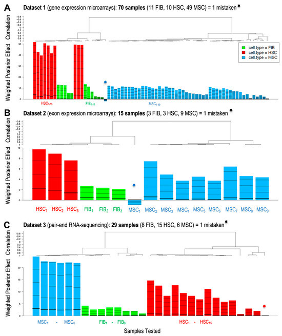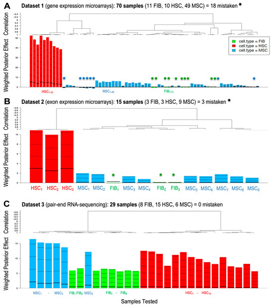 2.2. GlobalTest to Identify the Best Markers for MSCs in Three Independent Datasets