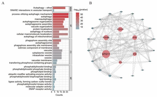 2.7. Analysis of BvATGs’ Protein Interaction Networks