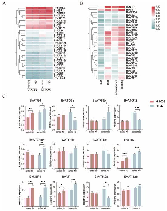 2.9. qRT-PCR Validation of BvATG Gene Involvement in Low-Nitrogen Stress Response