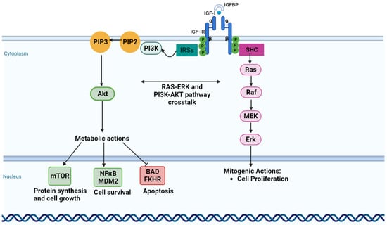 - Nwabo Kamdje, A.H.; Seke Etet, P.F.; Kipanyula, M.J.; Vecchio, L.; Tagne Simo, R.; Njamnshi, A.K.; Lukong, K.E.; Mimche, P.N. Insulin-like Growth Factor-1 Signaling in the Tumor Microenvironment: Carcinogenesis, Cancer Drug Resistance, and Therapeutic Potential. Front. Endocrinol. 2022, 13, 927390. [Google Scholar] [CrossRef] [PubMed]