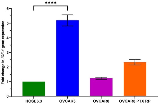 2.1. IGF-1 Is Overexpressed in Ovarian Cancer Cell Lines