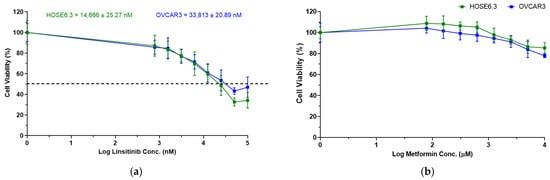 Almeida-Nunes, D.L.; Silva, J.P.N.; Nunes, M.; Silva, P.M.A.; Silvestre, R.; Dinis-Oliveira, R.J.; Bousbaa, H.; Ricardo, S. Metformin Impairs Linsitinib Anti-Tumor Effect on Ovarian Cancer Cell Lines. Int. J. Mol. Sci. 2024, 25, 11935. https://doi.org/10.3390/ijms252211935