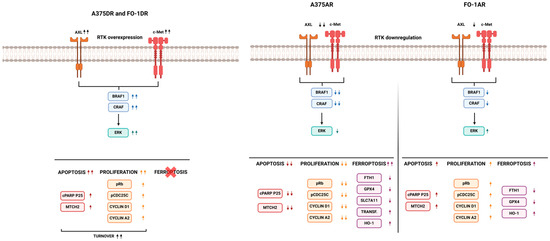 - Datta, K.K.; Kore, H.; Gowda, H. Multi-Omics Analysis Delineates Resistance Mechanisms Associated with BRAF Inhibition in Melanoma Cells. Exp. Cell Res. 2024, 442, 114215. [Google Scholar] [CrossRef] [PubMed]
