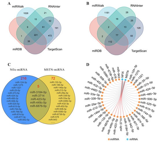 2.7. Construction of Nfix–miRNA–MSTN Interaction Regulation Network