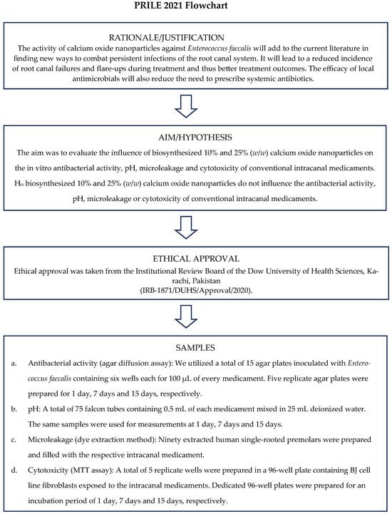 - Nagendrababu, V.; Murray, P.E.; Ordinola-Zapata, R.; Peters, O.A.; Rôças, I.N.; Siqueira, J.F., Jr.; Priya, E.; Jayaraman, J.; Pulikkotil, S.J.; Suresh, N. PRILE 2021 guidelines for reporting laboratory studies in Endodontology: Explanation and elaboration. Int. Endod. J. 2021, 54, 1491–1515. [Google Scholar] [CrossRef]