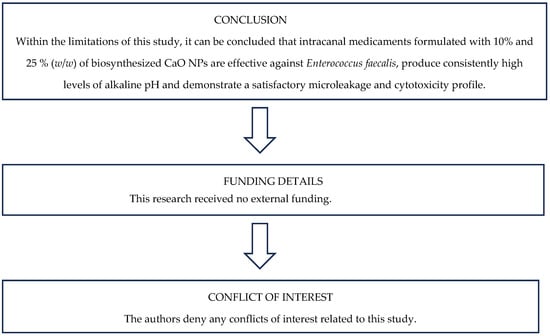 Kazi, F.M.; Parvez, K.; Asghar, A.; Akbar, S.; Jawaed, N.-u.-A.; Kumar, N.; Palma, P.J. In Vitro Evaluation of the Influence of Biosynthesized Calcium Oxide Nanoparticles on the Antibacterial Activity, pH, Microleakage and Cytotoxicity of Conventional Intracanal Medicaments. Int. J. Mol. Sci. 2024, 25, 11991. https://doi.org/10.3390/ijms252211991