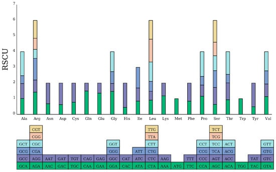 - Parvathy, S.T.; Udayasuriyan, V.; Bhadana, V. Codon usage bias. Mol. Biol. Rep. 2022, 49, 539–565. [Google Scholar] [CrossRef]