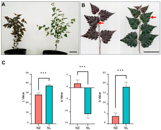 - Lin, L.; Mu, H.; Jiang, J.; Liu, G. Transcriptomic analysis of purple leaf determination in birch. Gene 2013, 526, 251–258. [Google Scholar] [CrossRef] [PubMed]