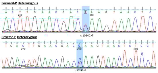Based on the results of prediction analysis, the c.1024C>T is a deleterious mutation and is strongly predicted to be pathogenic according to the ACMG standards [12]. However, the biological effect of this mutation needs further studies.