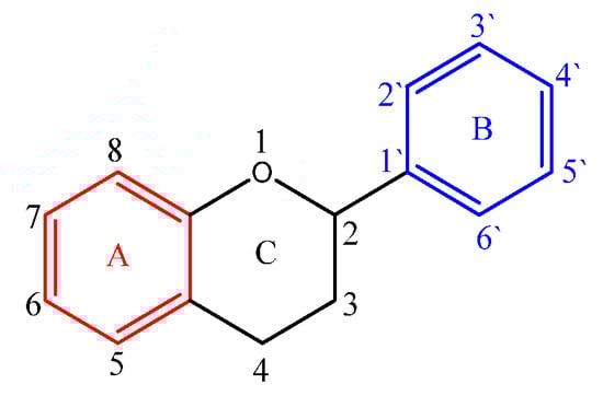 - Flavones (present a double bond between the C2 and C3 positions and a ketone group at position 4 of the heterocyclic C ring) [];