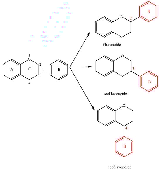 Flavonoids can be divided into the following three classes based on the position of the benzenoid substituent relative to the benzopyranic substituent (C ring), as illustrated in Figure 3: