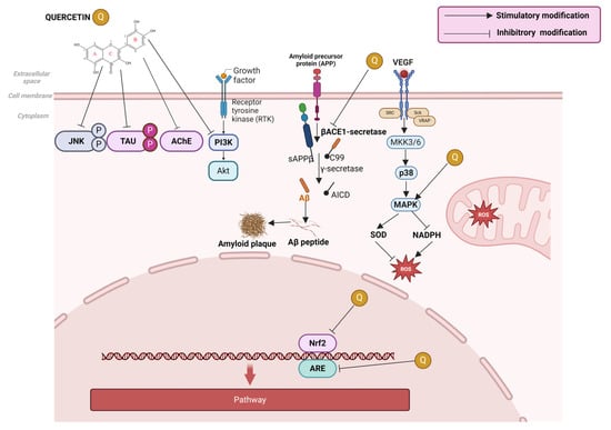 - Zaplatic, E.; Bule, M.; Shah, S.Z.A.; Uddin, M.S.; Niaz, K. Molecular mechanisms underlying protective role of quercetin in attenuating Alzheimer’s disease. Life Sci. 2019, 224, 109–119. [Google Scholar] [CrossRef]