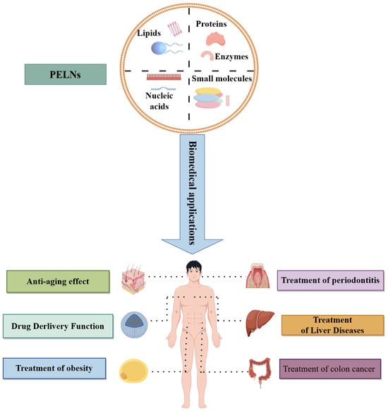 This paper outlines the content, isolation techniques, characterization methods, preservation techniques, and functions of PELNs, with a focus on the potential applications of PELNs in clinical diseases, including as antiviral, antitumor, and antifibrotic agents, drug delivery, and in the promotion of antimelanin effects and cell proliferation. This paper also analyzes and predicts the future research directions of PELNs, providing a reference for a thorough analysis of the mechanism of PELNs.