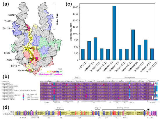 - Tanaka, H.; Sato, S.; Koyama, M.; Kujirai, T.; Kurumizaka, H. Biochemical and Structural Analyses of the Nucleosome Containing Human Histone H2A.J. J. Biochem. 2020, 167, 419–427. [Google Scholar] [CrossRef] [PubMed]