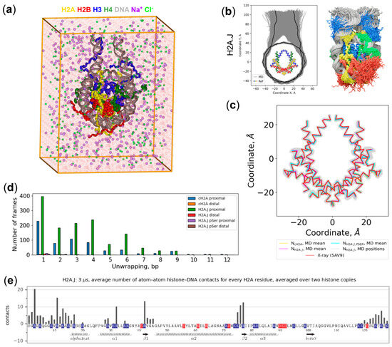 Kosarim, N.A.; Fedulova, A.S.; Shariafetdinova, A.S.; Armeev, G.A.; Shaytan, A.K. Molecular Dynamics Simulations of Nucleosomes Containing Histone Variant H2A.J. Int. J. Mol. Sci. 2024, 25, 12136. https://doi.org/10.3390/ijms252212136