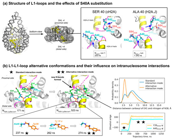 2.3. The Effect of Ser40Ala Substitution on L1-Loop Conformation and in Intra- and Inter-Dimer Interactions Within the Nucleosome
