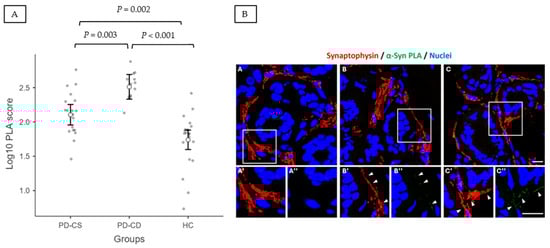 - Vacchi, E.; Senese, C.; Chiaro, G.; Disanto, G.; Pinton, S.; Morandi, S.; Bertaina, I.; Bianco, G.; Staedler, C.; Galati, S.; et al. Alpha-Synuclein Oligomers and Small Nerve Fiber Pathology in Skin Are Potential Biomarkers of Parkinson’s Disease. NPJ Park. Dis. 2021, 7, 119. [Google Scholar] [CrossRef] [PubMed]