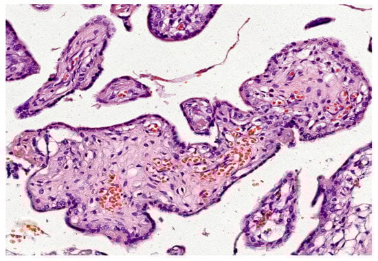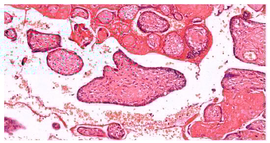 - Jauniaux, E.; Burton, G.J. Pathophysiology of histological changes in early pregnancy loss. Placenta 2005, 26, 114–123. [Google Scholar] [CrossRef]
