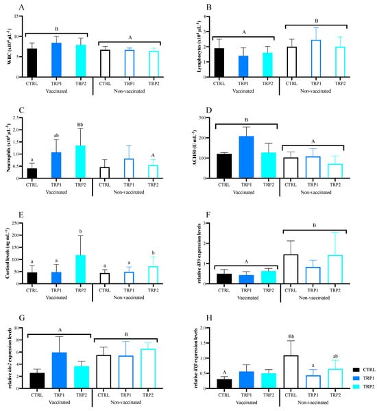 2.2. Long-Term Synergistic Effects of Feeding Dietary Tryptophan for 6 Days and Dip Vaccination on Fish Immune Response