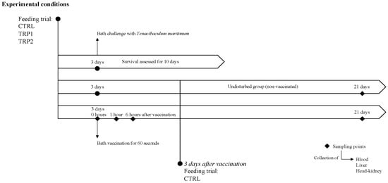2.1. Short-Term Modulatory Effects of Dietary Tryptophan Supplementation for 3 Days on Fish Acute Response to Vaccination and Disease Resistance