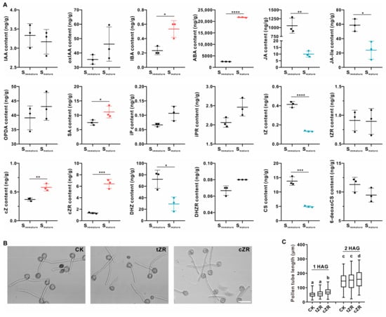 2.4. Cis-Zeatin Riboside Facilitates Tobacco Pollen Tube Growth In Vitro