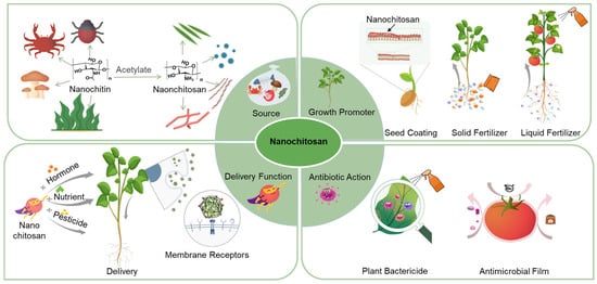 Nanochitosan as a sustainable alternative offers promising solutions for sustainable agricultural practice that work at multiple spatial and temporal scales throughout the plant growth cycle (Figure 2).