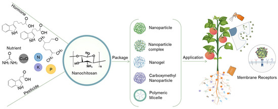 Nanochitosan has many advantages not only in terms of its source, plant growth promotion, and antimicrobial properties but also in terms of delivery of agrochemicals. The nanodelivery systems can provide the targeted and controlled release of agrochemicals and improve the efficiency and intelligence of agrochemical technologies. A variety of chemicals can be encapsulated in nanochitosan, including plant growth regulators, soil nutrients, and pesticides. The delivery systems based on nanochitosan can avoid the overuse of agrochemicals by controlling the release of active ingredients. These delivery systems may also alleviate the challenge of over-pesticide use [69].