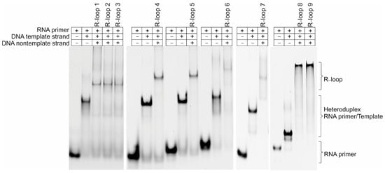 - Masukata, H.; Tomizawa, J.-I. A mechanism of formation of a persistent hybrid between elongating RNA and template DNA. Cell 1990, 62, 331–338. [Google Scholar] [CrossRef]