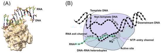 - Nudler, E. RNA Polymerase Active Center: The Molecular Engine of Transcription. Annu. Rev. Biochem. 2009, 78, 335–361. [Google Scholar] [CrossRef]