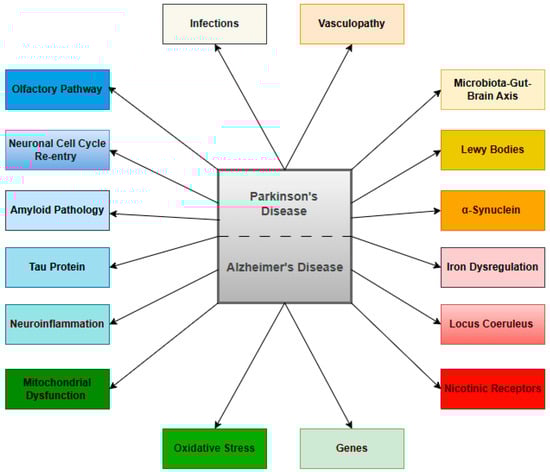 - Szot, P. Common factors among Alzheimer’s disease, Parkinson’s disease, and epilepsy: Possible role of the noradrenergic nervous system. Epilepsia 2012, 53, 61–66. [Google Scholar] [CrossRef]