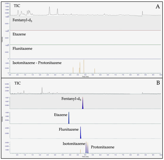 - Schüller, M.; Lucic, I.; Øiestad, Å.M.L.; Pedersen-Bjergaard, S.; Øiestad, E.L. High-Throughput Quantification of Emerging “Nitazene” Benzimidazole Opioid Analogs by Microextraction and UHPLC-MS-MS. J. Anal. Toxicol. 2023, 47, 787–796. [Google Scholar] [CrossRef] [PubMed]