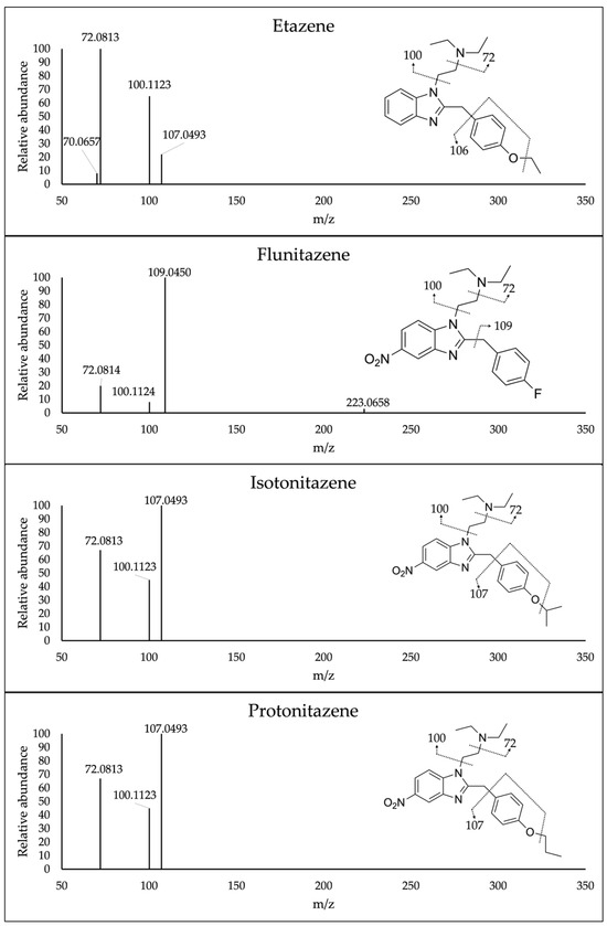 - Walton, S.E.; Krotulski, A.J.; Logan, B.K. A Forward-Thinking Approach to Addressing the New Synthetic Opioid 2-Benzylbenzimidazole Nitazene Analogs by Liquid Chromatography–Tandem Quadrupole Mass Spectrometry (LC–QQQ-MS). J. Anal. Toxicol. 2022, 46, 221–231. [Google Scholar] [CrossRef]