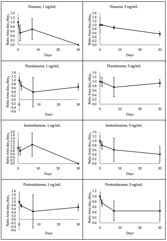 Vitrano A, Di Giorgi A, Abbate V, Basile G, La Maida N, Pichini S, Di Trana A. Evaluation of Short-Term Stability of Different Nitazenes Psychoactive Opioids in Dried Blood Spots by Liquid Chromatography-High-Resolution Mass Spectrometry. International Journal of Molecular Sciences. 2024; 25(22):12332. https://doi.org/10.3390/ijms252212332