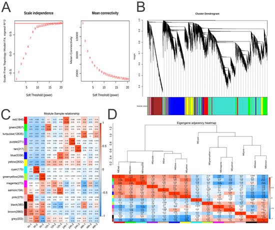 - Langfelder, P.; Horvath, S. WGCNA: An R package for weighted correlation network analysis. BMC Bioinform. 2008, 9, 559. [Google Scholar] [CrossRef]