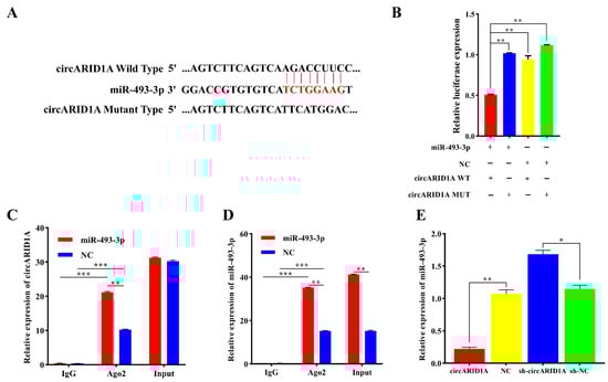 2.3. circARID1A as a Molecular Sponge for miR-493-3p