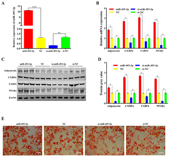 2.4. miR-493-3p Regulates Adipocyte Differentiation