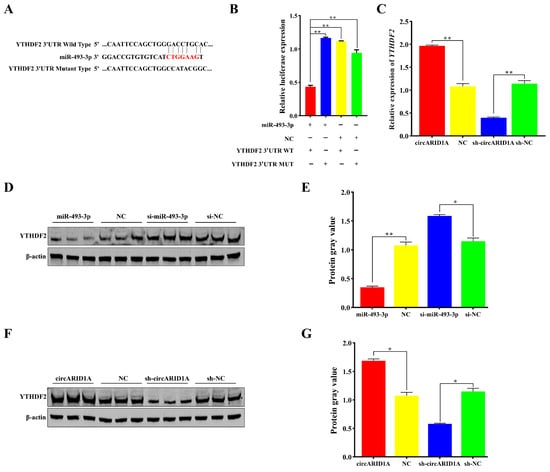 2.5. Target Relationship Between miR-493-3p and YTHDF2