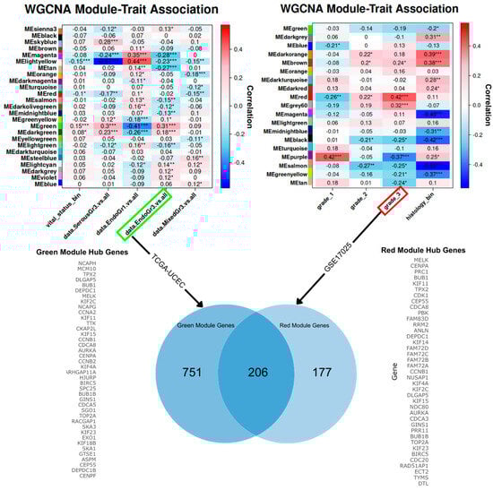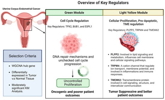 - Li, H.; Zhou, Q.; Wu, Z.; Lu, X. Identification of novel key genes associated with uterine corpus endometrial carcinoma progression and prognosis. Ann. Transl. Med. 2023, 11, 100. [Google Scholar] [CrossRef]
