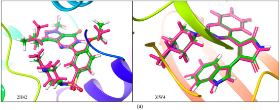 The three-dimensional (3D) X-ray crystal structure of the selected receptors, human phosphodiesterase 5 (PDB ID: 2H42) [59], arginase 2 (PDB ID: 4I06) [60], steroidogenic cytochrome P450 17A1 (PDB ID: 6CIZ) [61], protein kinase C alpha (PDB ID: 3IW4) [62], O-GlcNAc transferase (PDB ID: 6MA5) [63], and adenosine deaminase (PDB ID: 1NDZ) [64], were retrieved from the Protein Data Bank (https://www.rcsb.org), with their corresponding bound ligands. The PyMOL molecular graphics system (version 2.5, Schrödinger, LLC., New York, NY, USA) was used for visualization of the proteins. The protein preparation wizard tool in Maestro was used to prepare the protein before performing the molecular docking, as previously described [58]. Briefly, bond order assignment was conducted, hydrogens added, zero-order metal bonds made, disulfide bonds created, water molecules removed, and het states generated using Epik at pH 7.0 ± 0.2 during protein production. Protein refinement was performed by optimizing the H-bond assignment, and then the OPLS3e force field was used to minimize the protein.
