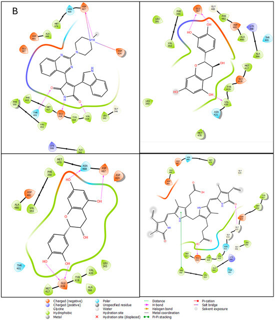 The potential binding free energy of the receptor–ligand docked complexes was calculated using Prime MM/GBSA in the Schrödinger suite. For the free binding energy calculation of the docked complexes, the solvent model and force field were set to VSGB and OPLS3, respectively, while other options were left at the default settings, as previously reported [58].